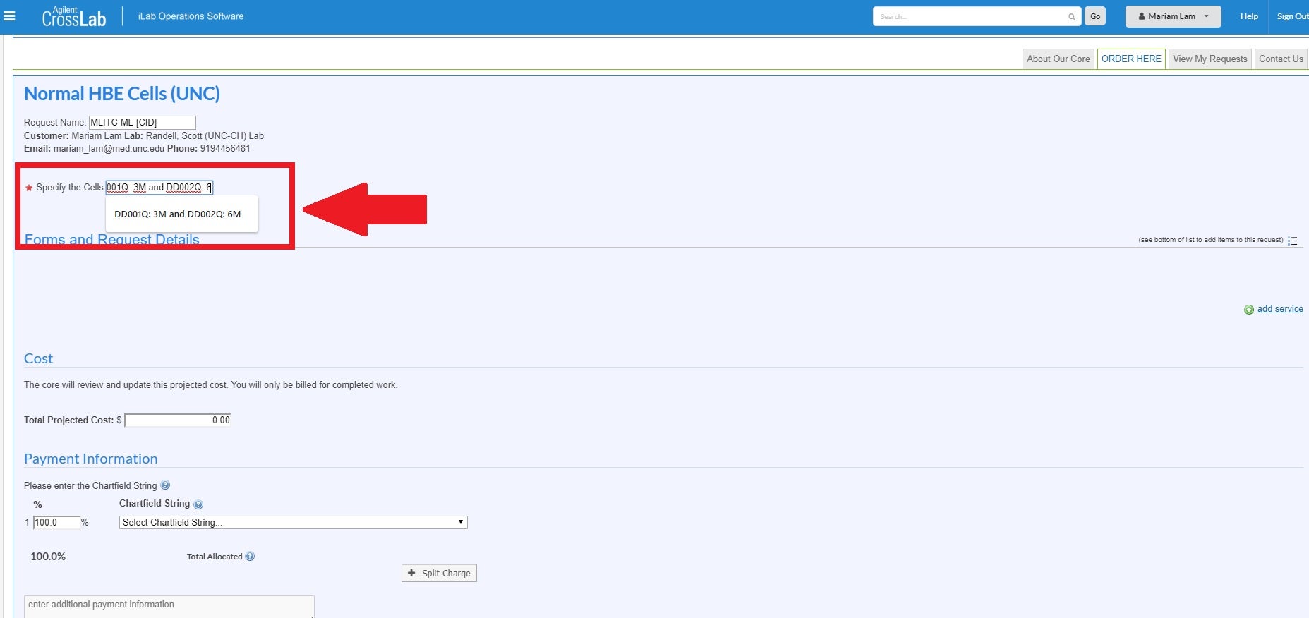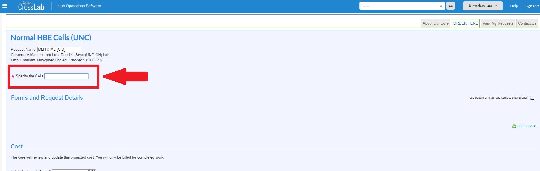 - Log into iLabs, locate the Airway BioCore page, and select the Order Here tab