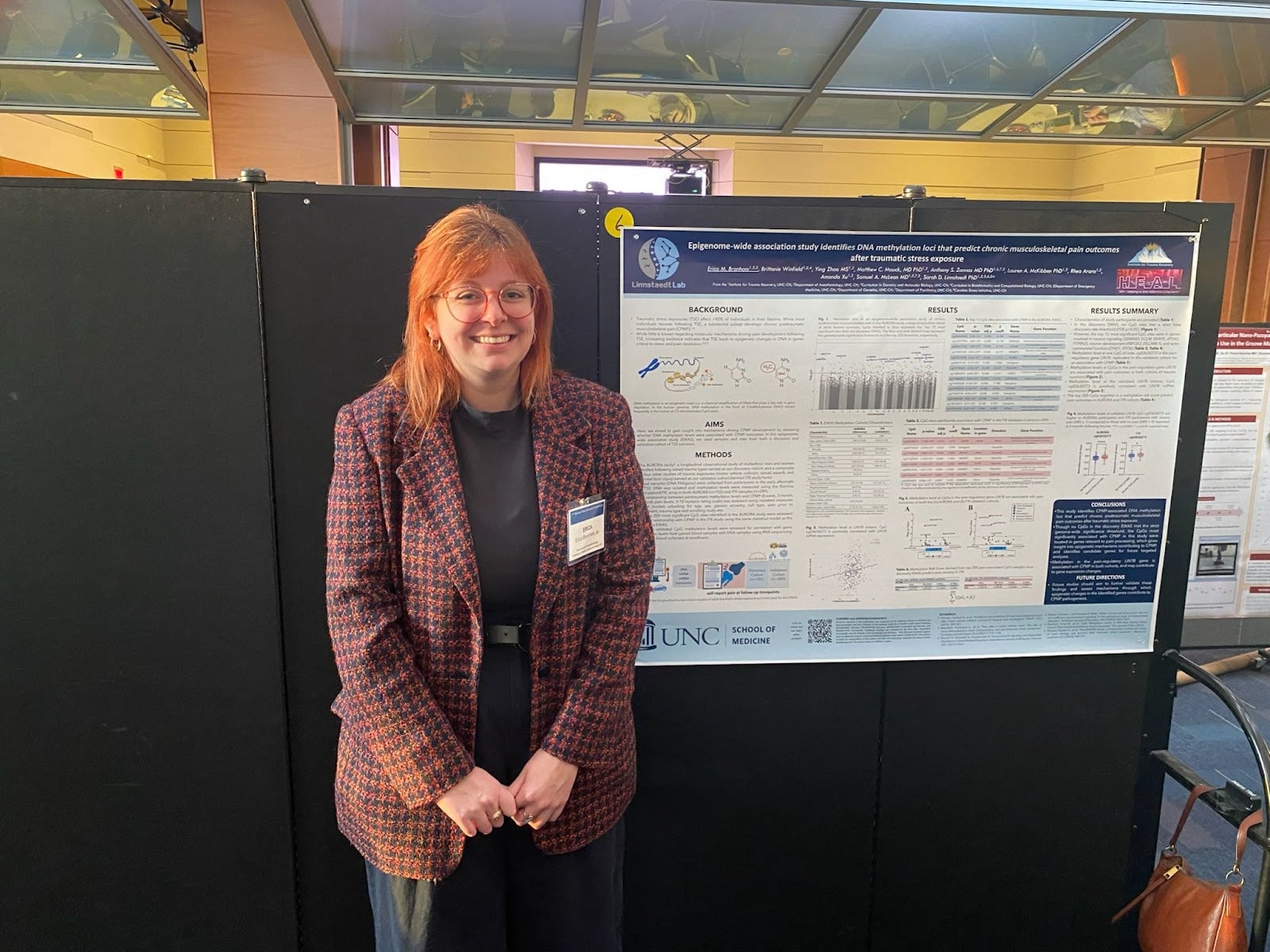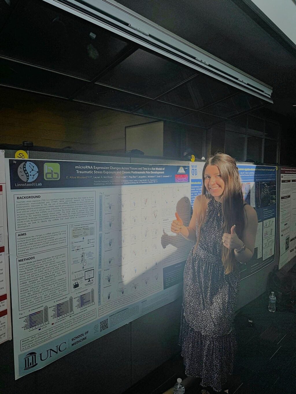 Linnstaedt Lab members attended and presented at the 2nd annual Duke Maixner Pain Research Symposium November 8, 2024 By Kennedy Bell Linnstaedt Lab members Brittanie Winfield, Meghna Iyer, Taanvii Verma, Erica Branham, Jacqueline Mickelson, Kennedy Bell, Miranda Layne, & Alice Woolard and each presented posters showcasing their research. Filed Under: Categories: News More from Linnstaedt Lab The Linnstaedt Lab Co-Authors New Paper with the Laumet Lab Congratulations to Erica Branham from our lab who was selected to present a short talk at the 3rd annual Duke Maixner Pain Research Symposium Linnstaedt Lab members attended and presented at the 3rd annual Duke Maixner Pain Research Symposium
