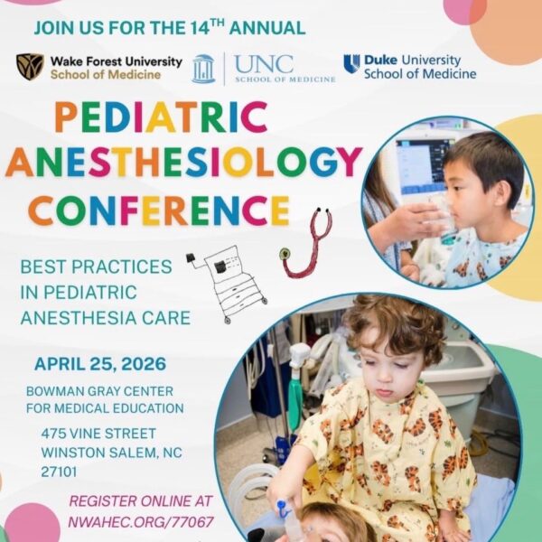 Join Pediatric Anesthesia Care Peers at the 2026 UNC-WFU-Duke Pediatric Anesthesiology Conference!