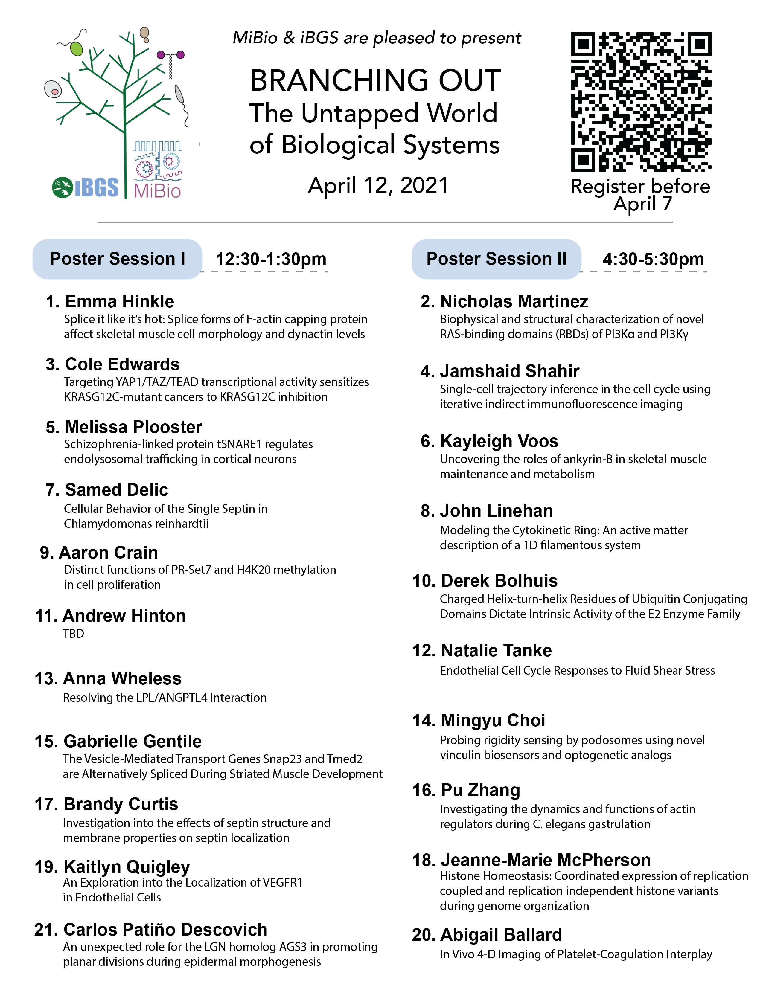 On April 12, 2021, the MiBio/iBGS Symposium went virtual. This year’s theme “Branching Out: The Untapped World of Biological Systems.”