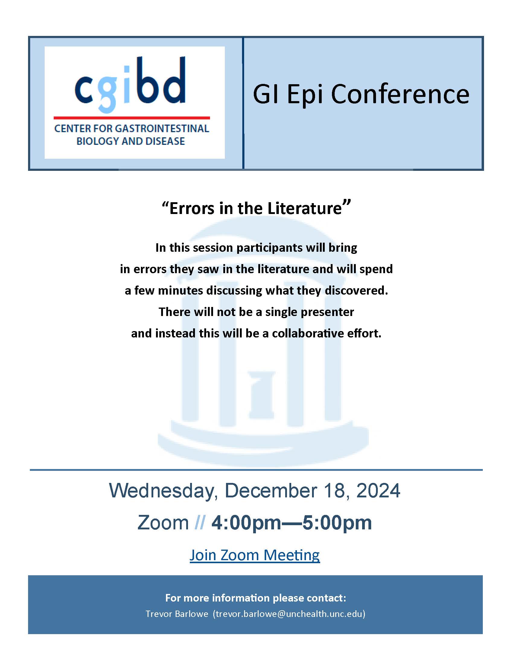 November 20, 2024 @ 4:00 pm - 5:00 pm “Environmental pollutants and inflammatory bowel disease” with Manasi Agrawal, MD ZOOM