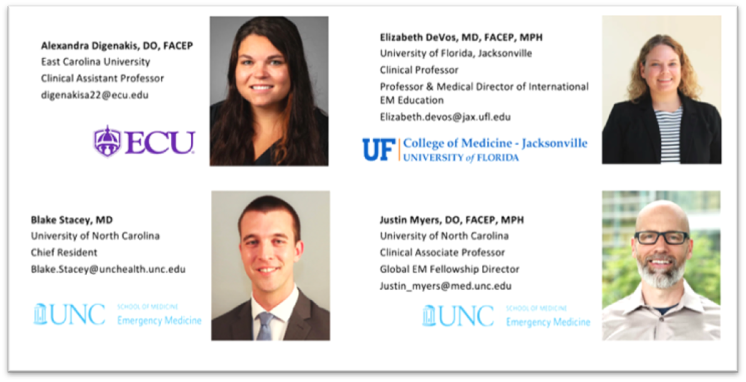 Dr. Stacey (UNC), Dr. Justin Myers (UNC), UNC alum Alexandra Digenakis (ECU), and Elizabeth DeVos (University of Florida) created the online curriculum for Emergency Medicine residents across these institutions, and are looking to expand it to other interested residents throughout the U.S.