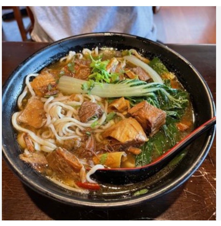 AAFA goes to Asian Kitchen! Alex, Zev, Lee, Karina, Emily, and I (Linda) had dinner at Asian Kitchen. The restaurant has changed ownership and now features hand pulled noodles ( see man in window!). The foodies Alex and Emily had been there before and knew what to order. We had tripe (I don’t eat regularly but thought it was delicious), cold cucumbers, water spinach, their specialty green beans, Hunan pork. We didn’t try their specialty duck blood, gizzards, or intestines (no feet on menu) but maybe we can try on our next outing… I’m game! We all had shaved noodle (hand-pulled) soup and took some home.