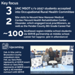 - Partner with Novant Health SERVE Pathways Program, part of the UNC Health Ingram Institute, to educate others about OT as a potential career pathway and engage with different settings in the region
