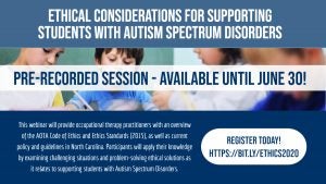 Ethics for School-based OTs Pre-recorded session will be available beginning May 1.
