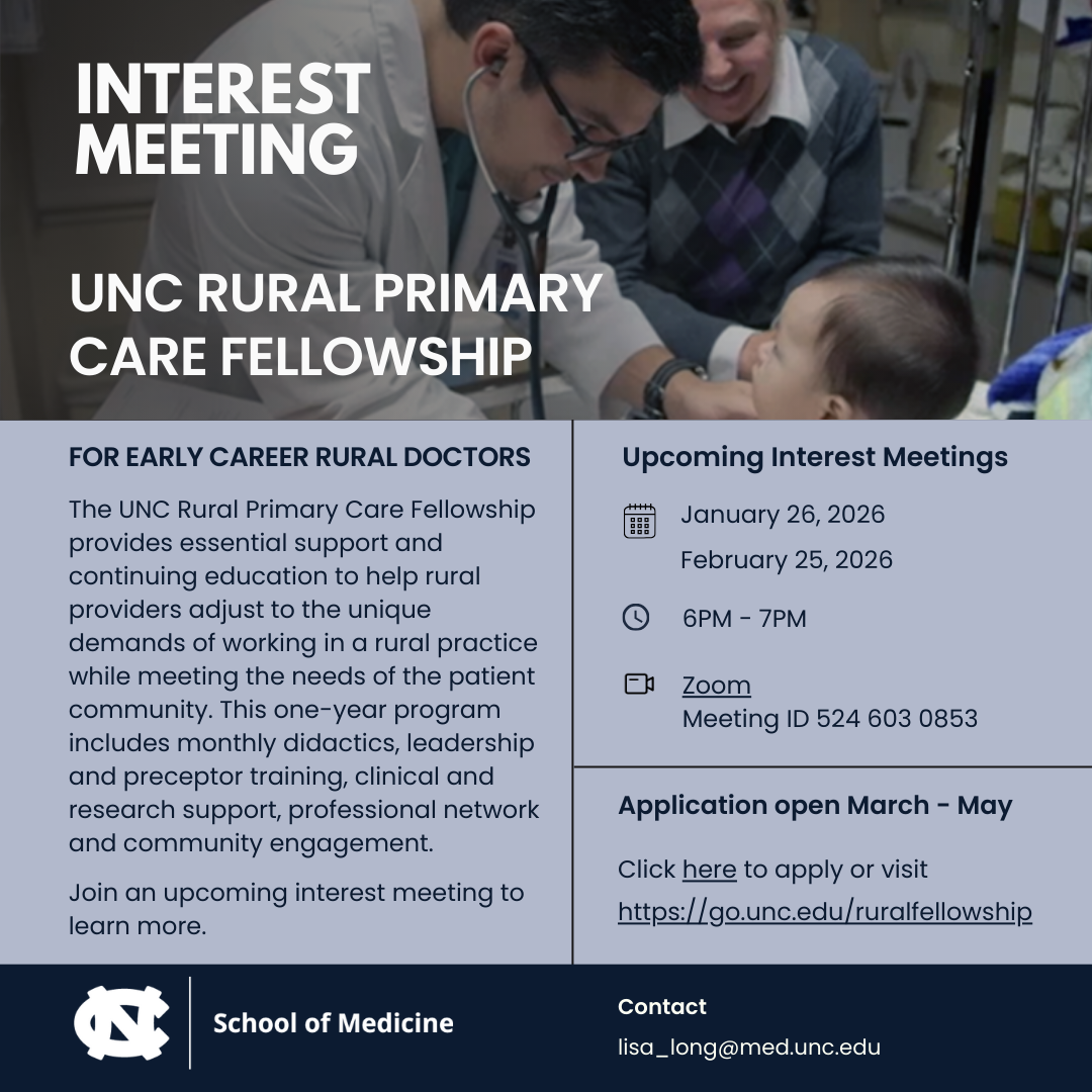 - Serve as liaison and preceptor for UNC family medicine residents during their rural FM rotations