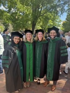 Evan Raff, MD, an associate professor of medicine in the Division of Hospital Medicine, had the honor of being a hooder, symbolically placing hoods over the heads of graduates to mark their transition to doctorate degree holders.
