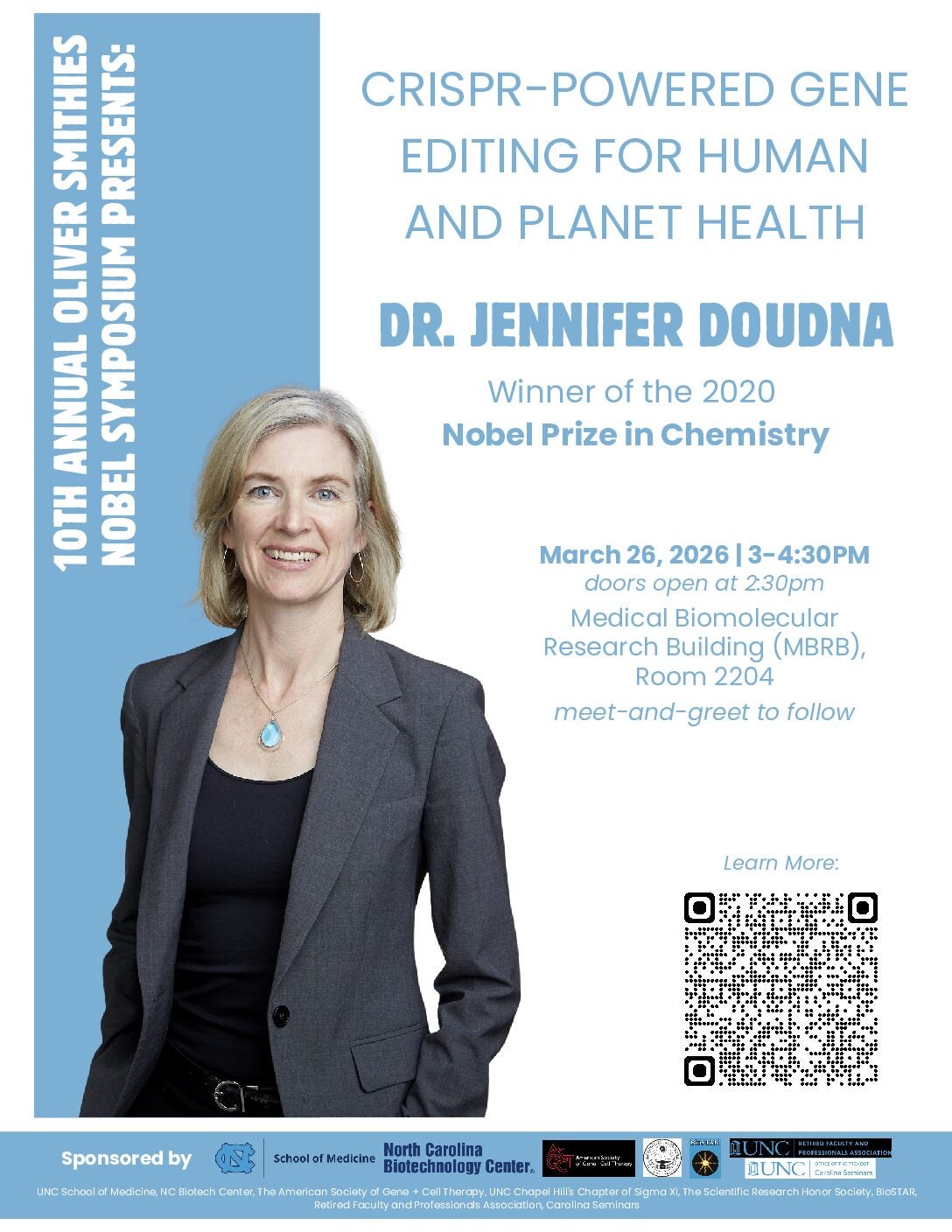 The 10th Annual UNC Oliver Smithies Nobel Symposium is excited to feature Dr. Jennifer Doudna, the 2020 Nobel laureate in Chemistry, as this year's distinguished speaker. Dr. Doudna is renowned for her groundbreaking work in characterizing and developing the CRISPR-Cas9 gene editing system, a revolutionary technology transforming fields ranging from agriculture to medicine. She is currently … Read more
