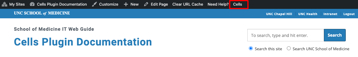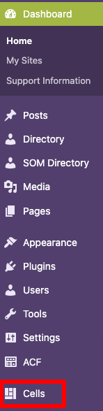 Before you can create a Cell, make sure the plugin is active on your site. Log into your web site and look at the admin bar located across the top of a page. If you see a Cells link, then the plugin has already been activated.