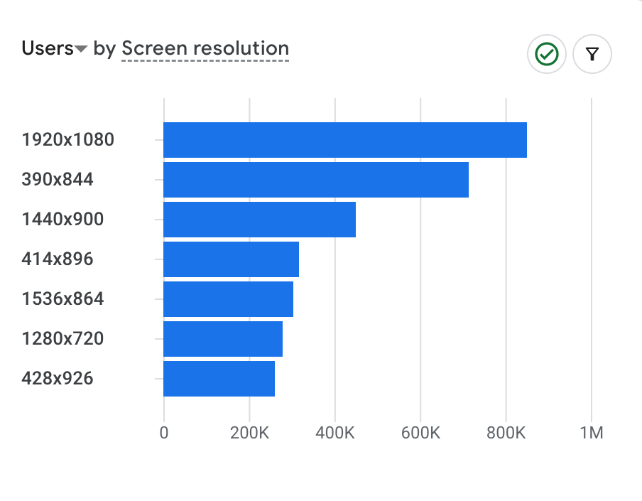The screenshot below shows the most common screen resolutions among visitors to School of Medicine (SOM) websites. Both large and small screen sizes are equally represented which underscores the importance of ensuring designs look good at various screen sizes.